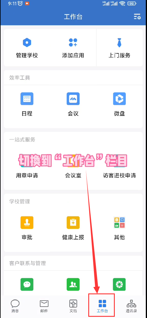 一、登录企业微信,切换到“工作台”栏目