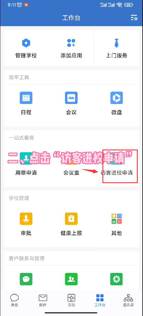二、点击“访客进校申请”