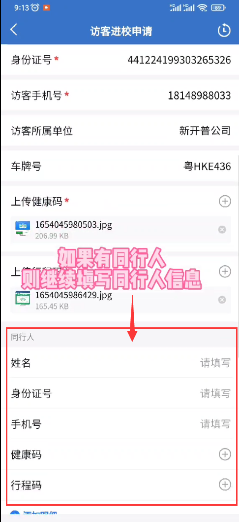 如果有多个访客,继续填写访客信息
