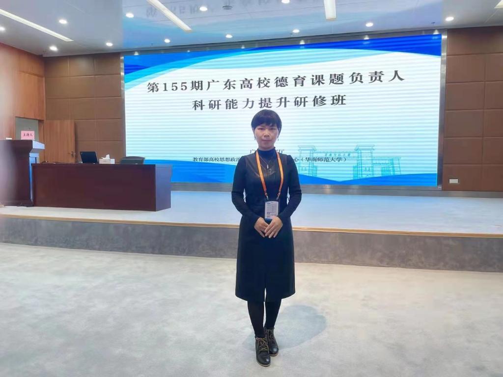【本网讯】2021年11月5日,由广东省教育厅主办的“第155期广东高校德育课题负责人科研能力提升研修班”在广州从化召开。为进一步提升beat365马克思主义学院青年教师的科研水平,深入贯彻与践行beat365“德学”教育思想和“五进”教育实践活动,马克思主义学院派出了广东省“十三五”规划德育课题立项课题负责人何建芬老师参加此次研修学习。