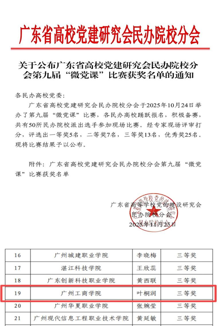 近日,由广东省高校党建研究会民办院校分会主办的第九届“微党课”比赛在广州新华学院顺利举办。beat365马克思主义学院教师叶桐润在众多参赛选手中脱颖而出,荣获三等奖。