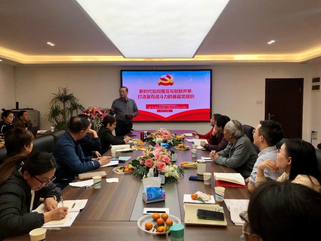 会上,钟监事长还从五个方面向大家详细地解读了基层党组织普遍存在的“上热中温下冷”现象,并指出我们要认真落实新时代党的建设新要求,以问题为导向,规范与创新并举,打造富有战斗力的基层党组织。就如何规范与创新,钟监事长提出以下建议:一是以改革创新、与时俱进的精神加强基层党建工作;二是全面推进基层党组织的组织创新和队伍建设;三是基层党组织宣传工作创新;四是创新构建党员联系和服务群众工作体系;五是创新党员教育工作,创建学习型基层党组织;六是创新建立健全对党员的管理、激励、关怀、帮扶机制;七是创新加强和改进流动党员管理工作;八是创新建设风清气正的基层党员队伍。他强调党建工作的难点在基层,亮点也在基层,检验一个党支部是否富有战斗力,一个基本标准就是看党支部建设成效如何。最后,钟监事长指出作为马院党员教师,我们要加强党史学习教育和学习贯彻党的十九届六中全会精神,全面提高基层党组织的党建水平。同时,也要发挥自身优势,继续在党史进校园、强化思政课教学和课堂思政上下功夫,将十九届六中全会精神融入思政课堂,深化“我为师生办实事”专项任务。