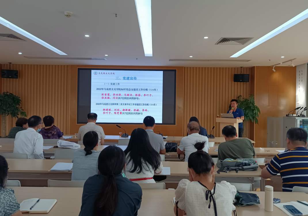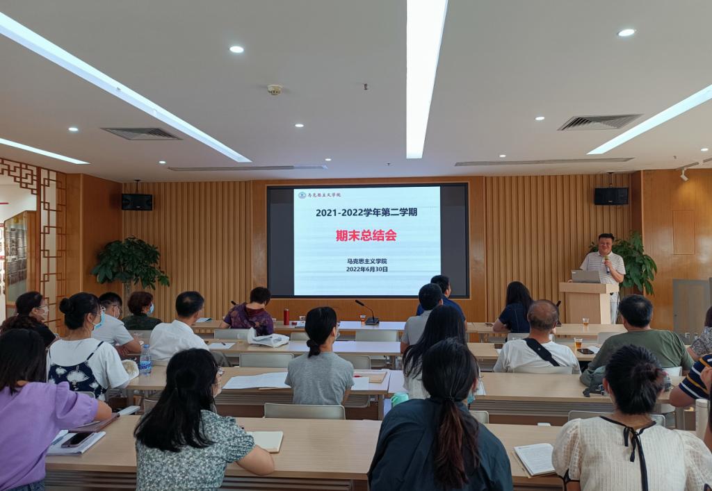 【本网讯】为全面总结马院本学期的工作,规范期末教学资料归档管理工作,彰显严谨尽责的工作作风,6月30日下午,马克思主义学院在三水校区图书馆六楼讲习所召开2021年——2022学年第二学期期末总结会。此次会议由马克思主义学院党总支书记、常务副院长周静副教授主持,马院全体专兼职教师参加此次会议。