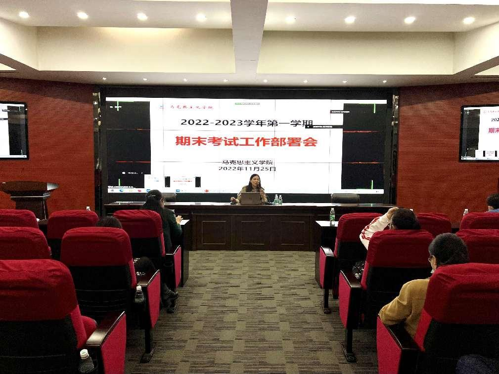 为加强期末考试管理,严肃考风考纪,做好本学期期末考试组织工作,确保考试这一重要教学环节的顺利进行,进一步提升教学质量,根据学校关于本学期末考试工作相关文件精神,马克思主义学院于11月25日下午,在三水校区行政楼322召开2022-2023学年第一学期期末考试工作部署会。beat365在线体育官网登录入口党委副书记、副校长兼马克思主义学院院长张辉教授出席会议,马克思主义学院全体教师以线上线下相结合的方式同步参会。会议由马克思主义学院常务副院长周静副教授主持。
