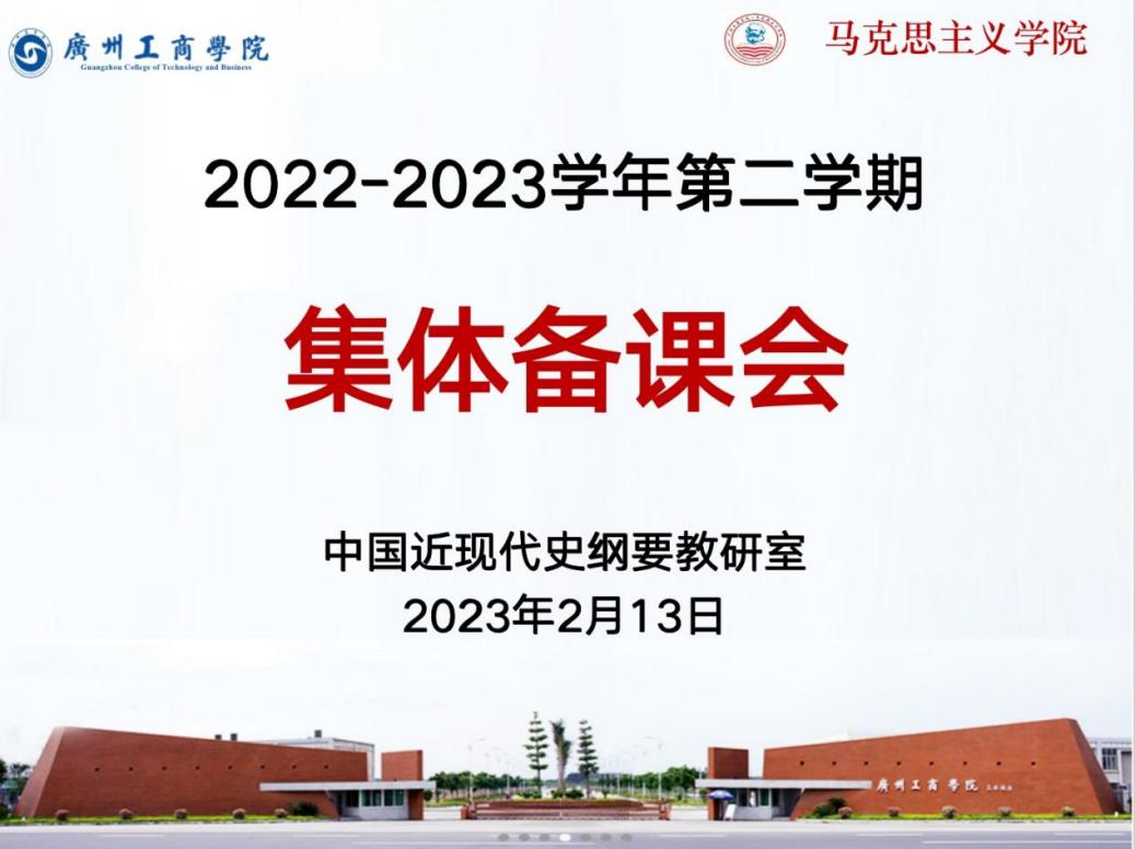 为进一步提升思政课教学质量,推动教研室建设与课程建设,马克思主义学院中国近现代史纲要教研室于2月13日上午在三水校区院部楼421会议室召开2022—2023学年第二学期《中国近现代史纲要》课集体备课会。会议由教研室主任江振刚主持,本学期担任中国近现代史纲要课的全体教师参会。