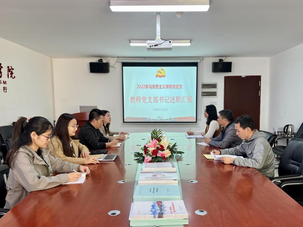为深入学习贯彻党的二十大精神,持续推动基层党建工作提质增效,根据校党委《关于做好2022年度二级党组织书记抓基层党建工作述职评议考核的通知》要求,结合马克思主义学院党建工作实际,2月24日上午,马克思主义学院党总支在院部楼424会议室召开了2022年度党支部书记抓基层党建述职评议考核会议,全体党总支委员、各教师党支部书记参加此次会议。会议由马克思主义学院党总支书记周静同志主持。
