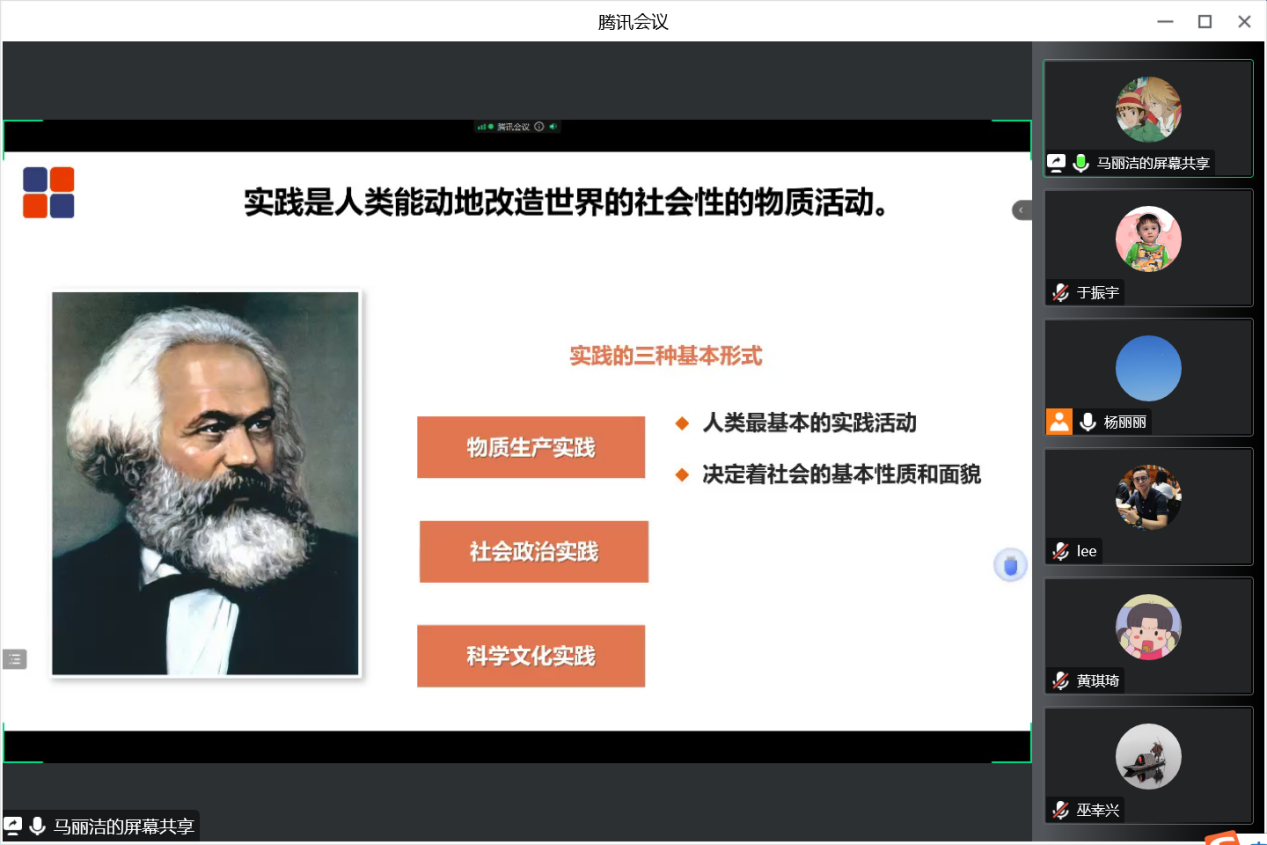 杨主任首先介绍《马克思主义基本原理》课程建设的任务。她指出,此次线上会议旨在通过教师之间的交流,明确授课的重点和难点,进而将个人智慧转化为集体优势,保障教学质量的整体提升。