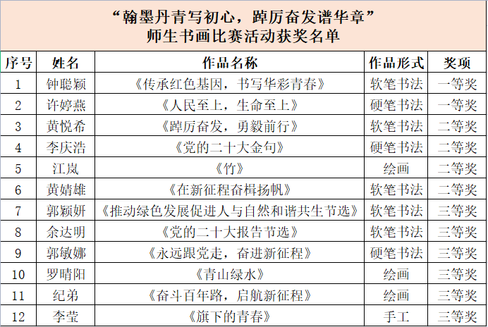 “翰墨丹青写初心,踔厉奋发谱华章”师生书画比赛活动最终结果