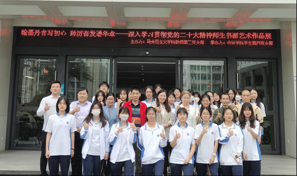 为全面学习贯彻党的二十大精神,深入开展学习贯彻习近平新时代中国特色社会主义思想主题教育,用鲜活的书画艺术形式歌颂中国共产党的伟大历程和丰功伟绩,进一步推动学校美育建设,延续中华优秀传统文化,引领广工商师生成为中国传统文化的研习者、传承者和发扬者。2023年4月10日—5月中旬,马克思主义学院教师第三党支部主办,会计学院学生第四党支部协办的“翰墨丹青写初心,踔厉奋发谱华章”师生书画比赛活动圆满落幕。