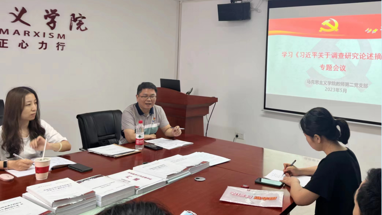 调查研究是我们党的传家宝,是做好各项工作的基本功,党的十八大以来,以习近平同志为核心的党中央高度重视调查研究工作并作出大量相关论述,深刻阐释了调查研究的极端重要性,为贯彻落实党中央《关于在全党大兴调查研究的工作方案》指示要求,紧紧围绕党的二十大精神,推动习近平新时代中国特色社会主义思想主题教育深入开展,以调查研究贯穿主题教育全过程、推动各项工作高质量发展,5月22日下午,马克思主义学院教师第二党支部在三水校区院部楼424会议室开展了《习近平关于调查研究论述摘编》专题学习会议。会议由第二党支部支部书记巫幸兴主持,支部全体党员参会。