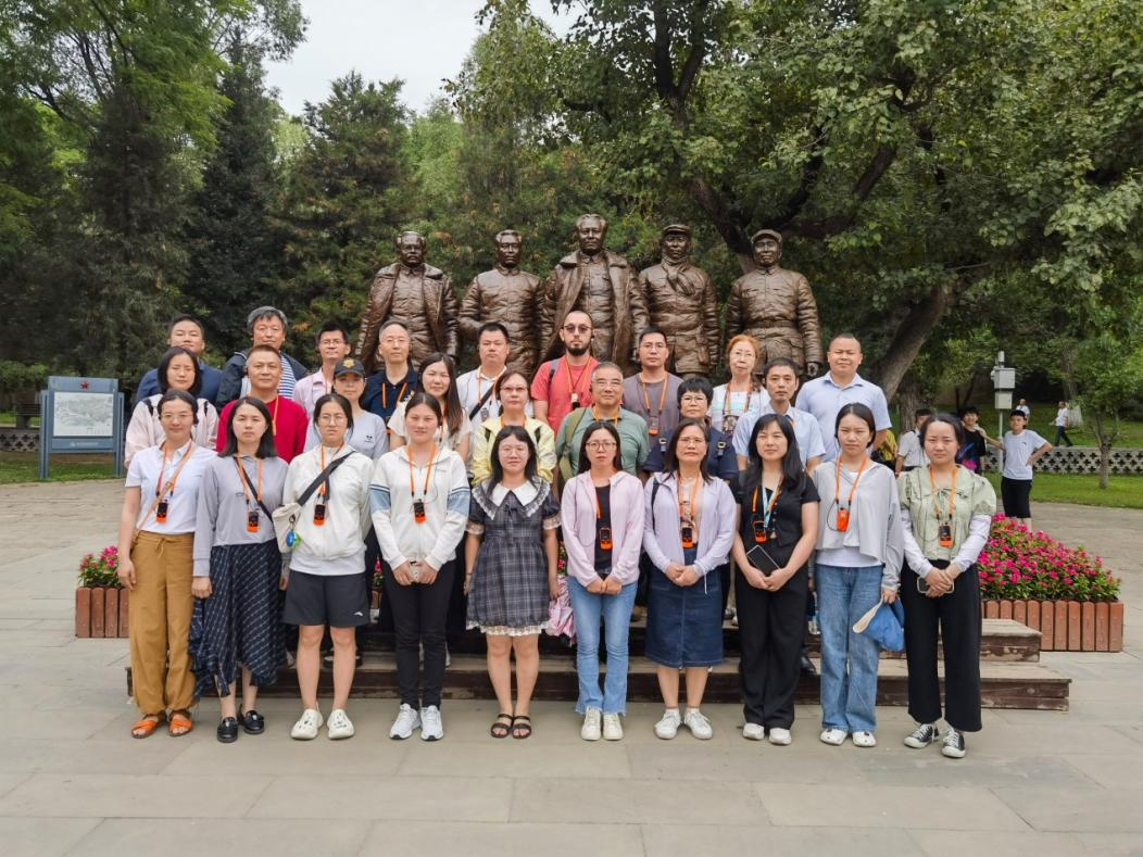 工作室成员与马院教师在枣园革命旧址五大书记铜像前合影