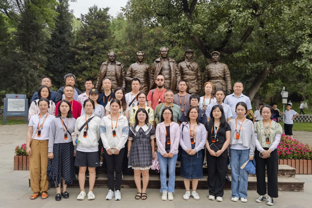 宝塔山下初心如磐,延安精神永放光芒。第三站老师们来到延安宝塔区延安革命纪念地景区,参观了杨家岭和枣园革命旧址。杨家岭革命旧址是中共中央1938年11月至1947年3月所在地,是毛泽东等中央领导同志在延安居住时间最长的驻地,在这里中共中央领导抗日战争最后胜利,开展了大生产运动和整风运动,召开了延安文艺座谈会和党的七大等许多重大会议,著名的“窑洞对”即在此发生。老师们聆听讲解员详细生动地讲解,先后来到中央大礼堂、革命领导人旧居、斯特朗与毛泽东谈话处等地参观,感悟革命先辈心忧天下的家国情怀、不屈不挠的斗争精神和敢于胜利的革命乐观主义精神。
