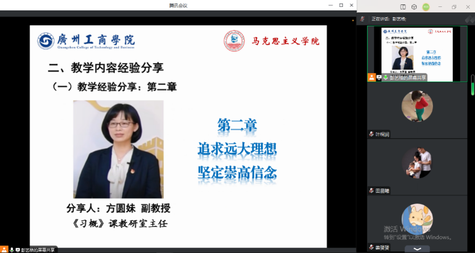 会议之初,教研室主任彭艺格老师布置了近期的教学工作重点。第一,彭主任强调要重视教学评价工作,各位老师应按照学校要求按时按量地参与听课工作,并且认真对待评分、评价环节,通过同行评价促进学院教师改善教学效果。第二,彭主任提出我们要重视课堂管理,促进线上教学活动的开展。《思想道德与法治》课程涉及多项课程建设任务,每位老师都要高度重视线上教学环节,认真抓好落实,充分利用本课程的线上教学资源,加强线上线下融合教学的效果,更好地完成思政课立德树人任务。第三,彭主任提出各位老师应积极鼓励同学们参与马克思主义学院近期的特色活动,充分彰显《思想道德与法治》课程的实践性,让同学们在实践中感悟新时代新发展,引导同学们做到理论联系实际、真学真懂真用。
