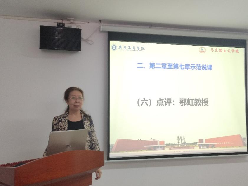 再次,在示范说课点评环节,鄂虹副教授对五位老师给予高度肯定,同时也指出不足,示范性说课要更加突出情境创设和师生互动环节的设计,注重学科交叉等。鄂虹教授指出示范性说课应该从说教材、说教学目标、说教学重难点、说学情、说教法、说教学过程、说时间分配、预测教学效果八个方面入手。此外,她对纲要课程教学提出三点建议。注重大历史观;注重互动性,问题设置应具备深度性;注重“三融入”,即融入地方史、融入时事政治、融入党的二十大精神。