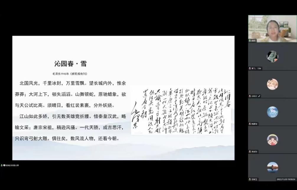 熊娟老师以教学过程中的“四个环节”:温故而知新、梳理重要历史事件脉络并引用诗歌导入、以案例拓展细致讲解教学重难点、推荐课程相关文学作品为基点,讲解了第七章内容的授课方向。