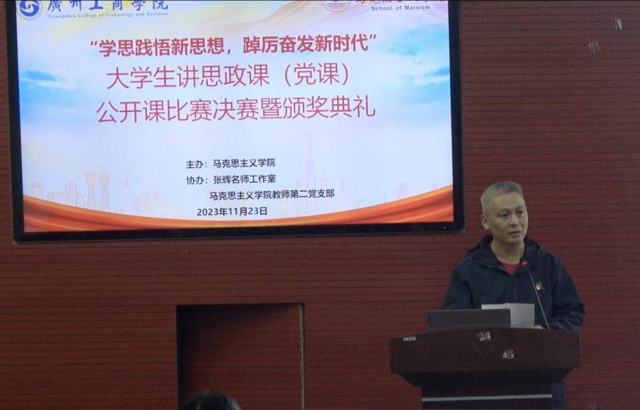 为深入开展学习贯彻习近平新时代中国特色社会主义思想主题教育,推进新时代“大思政课”建设,拓展大学生参与思政课实践教学途径,积极践行beat365“正德厚生 励志修能”校训,11月23日,由马克思主义学院、张辉名师工作室、马克思主义学院教师第二党支部联合举办的“学思践悟新思想,踔厉奋发新时代”大学生讲思政课(党课)公开课决赛在三水校区办公楼322会议室举行。