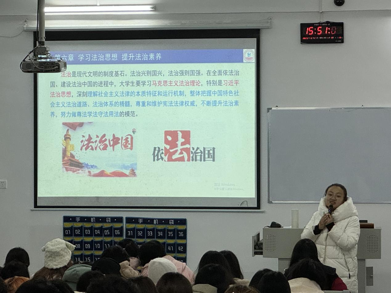 在授课过程中,彭艺格老师采用理论与实践相结合、课本知识与学生实际相结合、提问与讨论相结合的方式,展现了一堂精彩的思政课。彭艺格老师通过本堂课的精彩讲授,使同学们深刻意识到全面依法治国,事关政党,事关政府,事关你我,事关顶层设计,也事关百姓生活。全面依法治国,有你,有我,一个都不能少。每个人都应该自觉尊法、学法、守法、用法,养成遇事找法、解决问题靠法的好习惯,做一个遵纪守法的好公民。