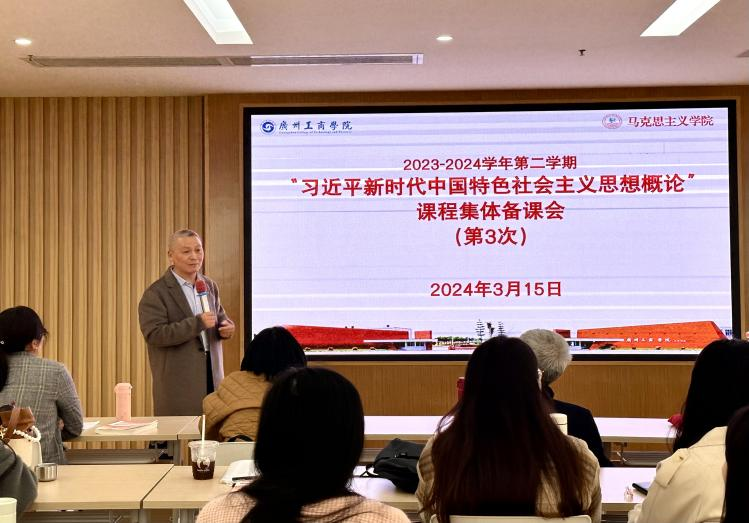 2024年3月15日,习近平新时代中国特色社会主义思想概论教研室在三水校区图书馆六楼新时代党员讲习所召开了本学期第三次集体备课会。会议由习近平新时代中国特色社会主义思想概论教研室主任方圆妹副教授主持,马克思主义学院副院长黄飞副教授、全体习近平新时代中国特色社会主义思想概论授课教师参加会议。