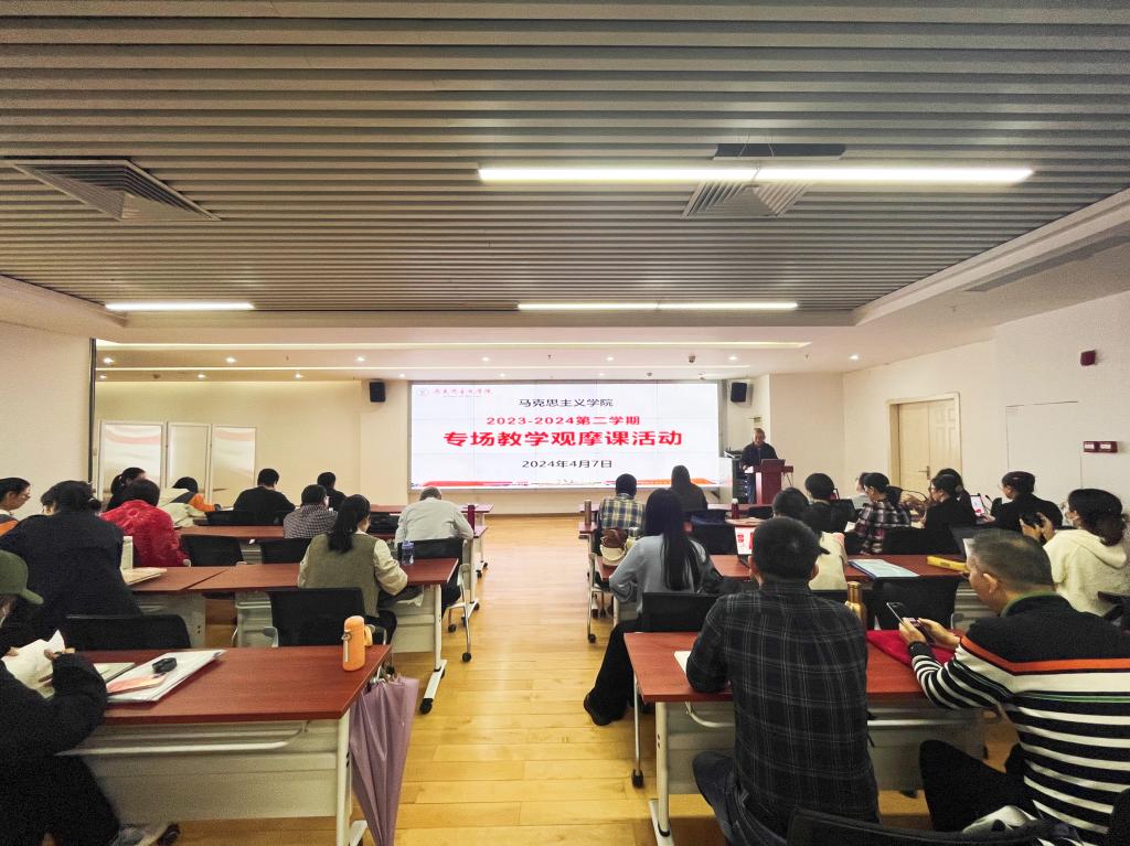 为加强思政课主渠道主阵地建设,进一步助力教师成长,根据学校教发中心和马克思主义学院观摩中心观摩课活动方案的具体安排,马克思主义学院于4月7日下午在三水校区院部楼525会议室举办了2023-2024学年第二学期专场教学观摩课活动。本次活动由马克思主义学院副院长黄飞副教授主持,马克思主义学院范国增副教授、彭艺格主任、郝建丽主任、宁佳鑫老师、余智颖老师主讲,马克思主义学院全体教师参加。