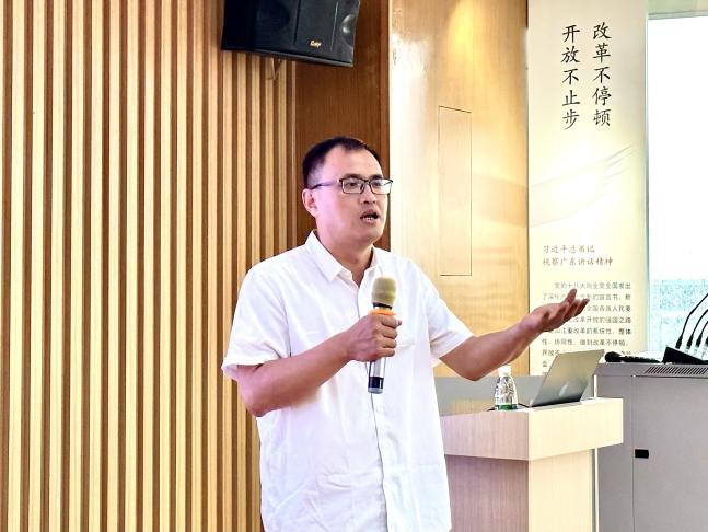 为进一步推动“习近平新时代中国特色社会主义思想概论”课程建设,帮助我院教师讲好“习近平新时代中国特色社会主义思想概论”课程,提升教学质量,2024年4月19日下午,我院邀请广东财经大学马克思主义学院副院长、硕士生导师孙晓晖教授于beat365图书馆新时代讲习所开展教学辅导专场讲座,本学期担任“习近平新时代中国特色社会主义思想概论”课程的全体任课教师参加了此次讲座。讲座由马克思主义学院常务副院长周静副教授主持。