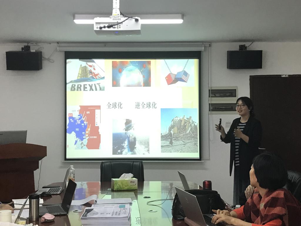 然后,由孙璐博士进行教学展示。孙璐博士围绕“全球化 逆全球化”这一内容进行了展示。孙璐老师从国际形势进行分析,对“全球化”、“逆全球化”的内涵及原因进行了讲解,最后指出面对经济逆全球化的现象我们应该如何做。孙璐博士仔细分析国际局势,指出“当前处于世界百年未有之大变局,逆全球化思潮抬头,单边主义、贸易保护主义明显上升,全球性问题加剧”。孙璐博士理论功底十分扎实,既有宏观国际思维,又能落脚于我国实际,从我国实际的经济发展角度出发提出经济对策。孙璐博士在授课中情感饱满,思路清晰,展示了博学的授课水平。