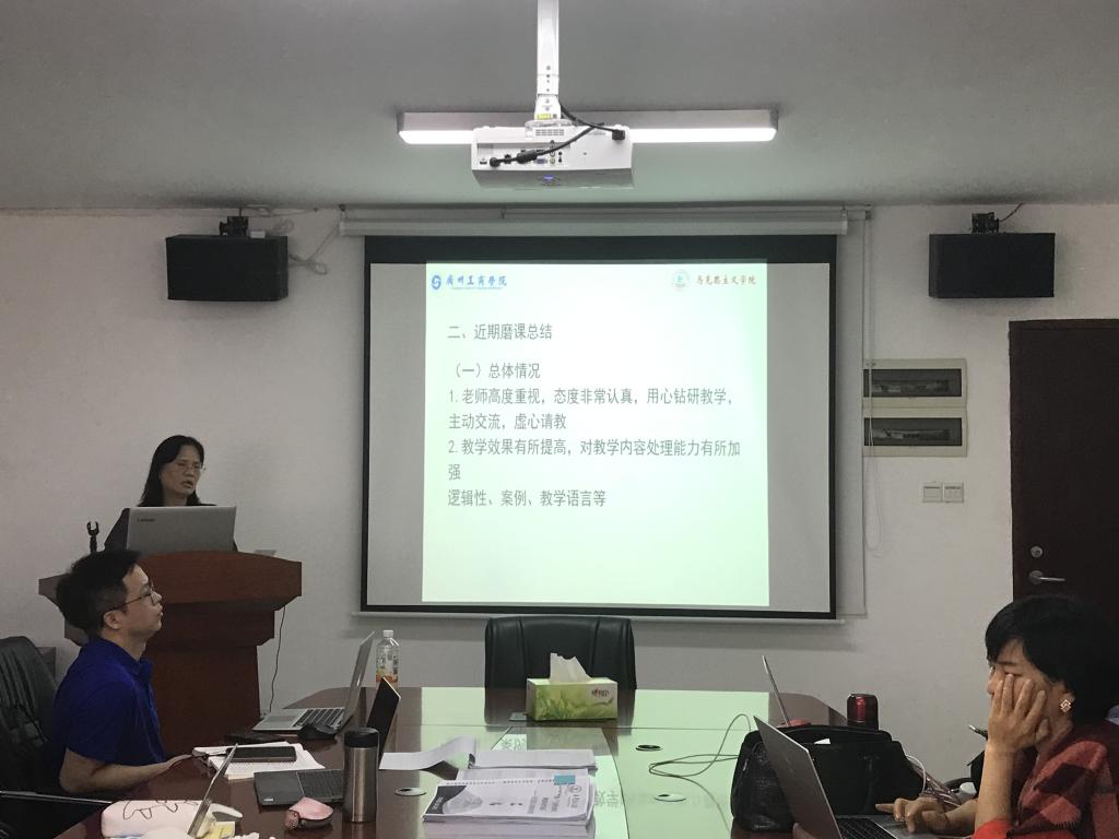 会议开始,杨朝辉副教授对上一周整体工作情况进行了总结,她指出了全体教师在磨课中的不足之处,并结合教研室实际情况提出了改进意见。她指出,参与磨课的全体教师需要本着高度负责的精神认真钻研书本知识内容,重新梳理书本逻辑框架,做到将书本内容熟记于心。