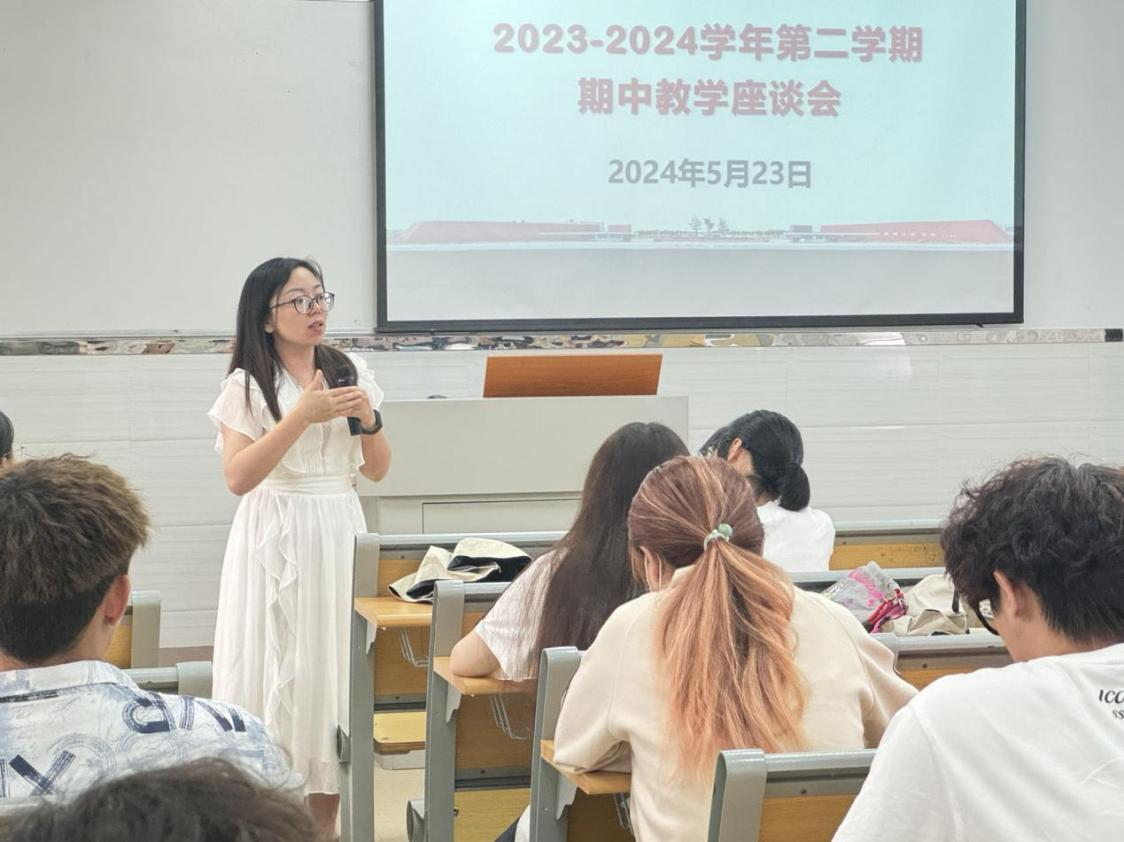 花都校区座谈会上,田晨曦老师指出本次学生座谈会是学校教学反馈的一个重要环节,目的是听取学生对思政课教学内容、教学方法、教学手段等各方面的意见和建议,为进一步改善思政课的课堂环境和教学水平,为学生健康、高效的学习思政课奠定良好的基础,并积极鼓励同学们踊跃发言。
