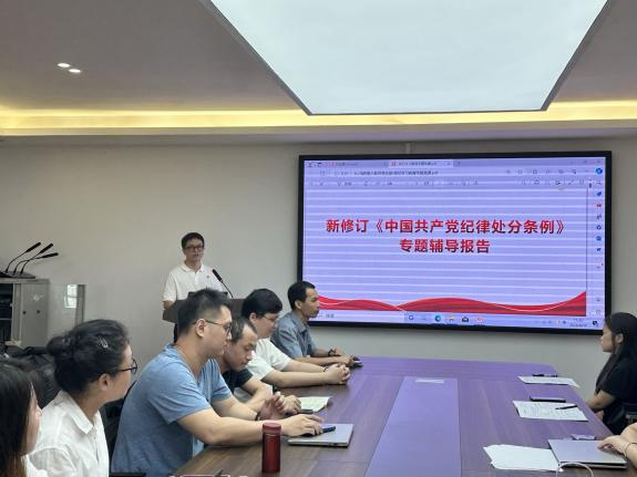 为扎实开展党纪学习教育,引导党员干部进一步学纪、知纪、明纪、守纪,进一步增强学习贯彻《中国共产党纪律处分条例》的政治自觉和思想自觉,2024年6月17日上午,马克思主义学院教师第三党支部在三水校区图书馆张辉名师工作室开展党纪学习教育专题党课。党课由支部书记蔡宗坚副教授主讲,支部全体党员参会。