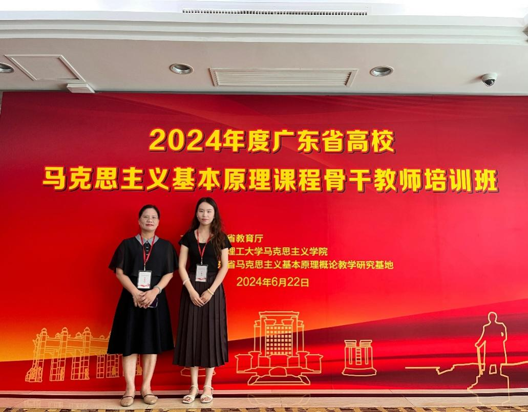 为进一步加强我院教师队伍建设,促进教师教学专业能力提升,切实提高教育教学质量,6月22日,马克思主义学院选派马克思主义基本原理课程教研室主任杨朝晖和青年教师张丽薇两位教师参加了“2024年度广东省高校马克思主义基本原理课程骨干教师培训班”,本次培训在广东广州举办。