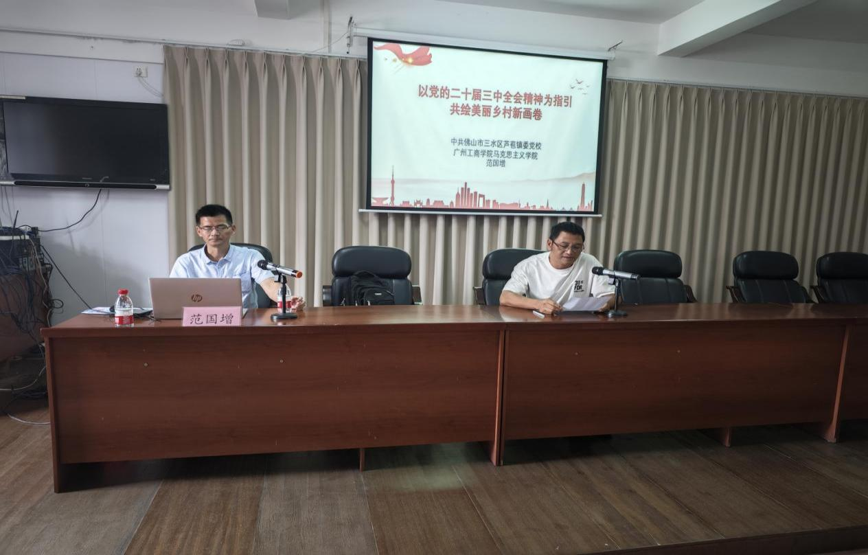 为全面学习宣传贯彻党的二十届三中全会精神,确保三中全会精神在乡村深入人心。beat365在线体育官网登录入口马克思主义学院党总支与中共佛山市三水区芦苞镇委党校联合举办了学习贯彻党的二十届三中全会精神专题培训班。马克思主义学院宣讲团专家范国增副教授应邀于10月18日深入芦苞镇刘寨村开展题为《以党的二十届三中全会精神为指引 共绘美丽乡村新画卷》的专题党课讲座。