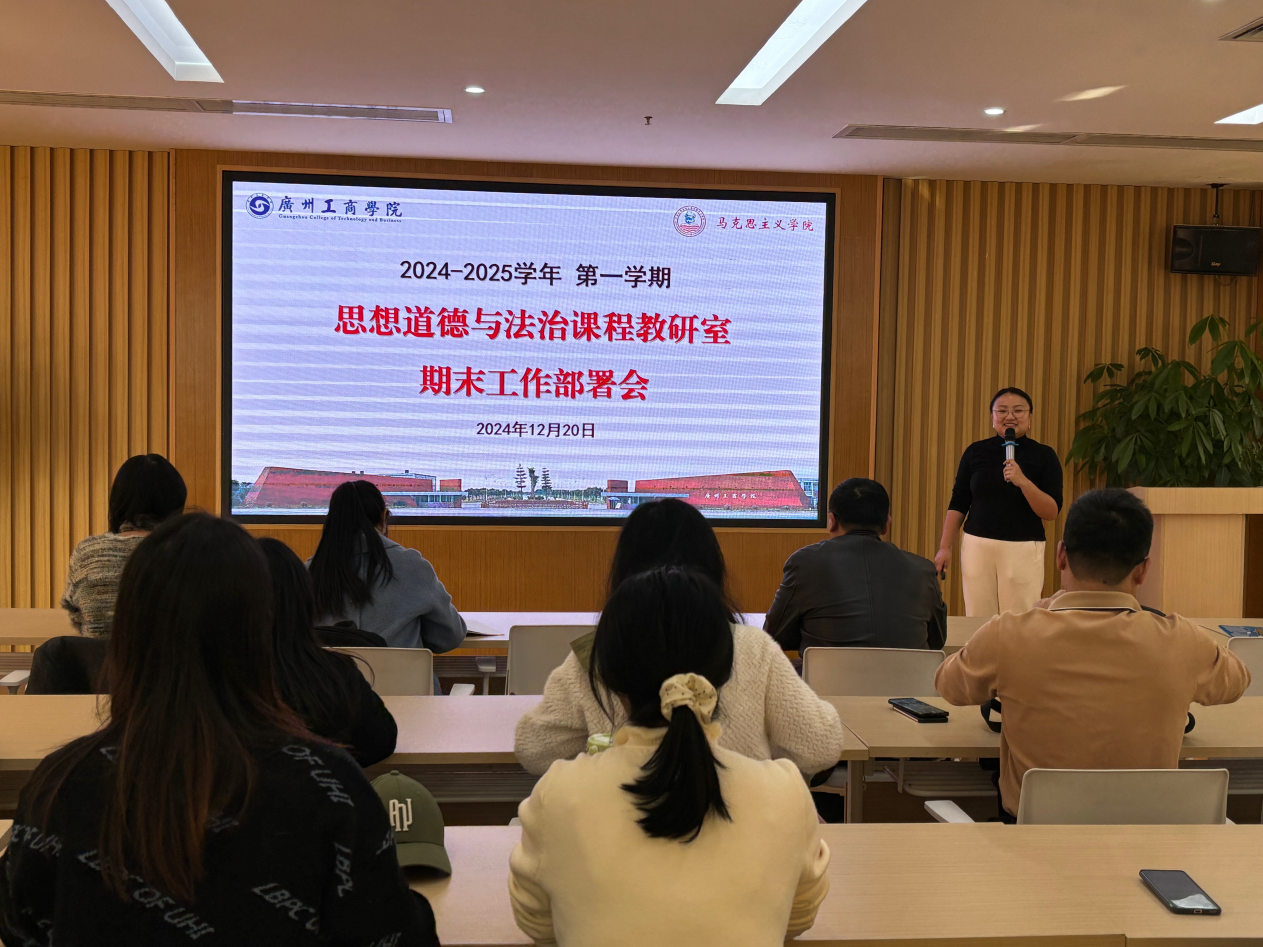 为深入学习贯彻党的二十届三中全会精神,确保期末考试工作的顺利进行,明确《思想道德与法治》课程期末工作要求,2024年12月20日,思想道德与法治课程教研室在三水校区新时代讲习所召开本学期期末考试工作部署大会。会议由思想道德与法治教研室主任彭艺格老师主持,本学期担任思想道德与法治课程的全体任课老师参加。