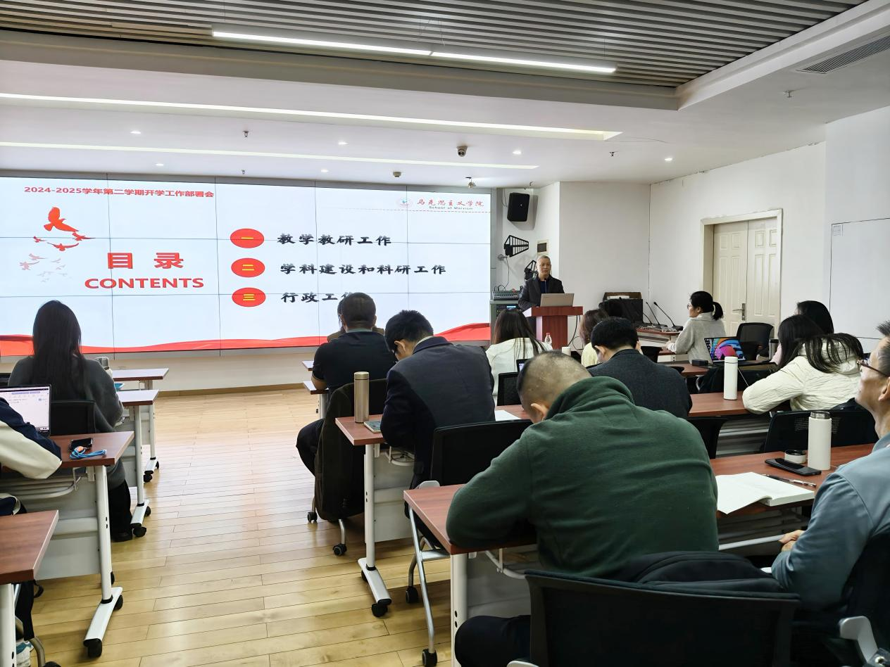 本次会议在全体教师的积极参与和高度关注下圆满结束。新学期的号角已经吹响,马克思主义学院全体教师将以更加饱满的热情、更加严谨的态度和更加务实的作风,投入到新学期的各项工作中。在学校的坚强领导下,马克思主义学院将继续深化教育教学改革,强化党建引领作用,提升学科建设水平,为培养让党放心、爱国奉献,担当民族复兴重任的时代新人贡献智慧和力量。