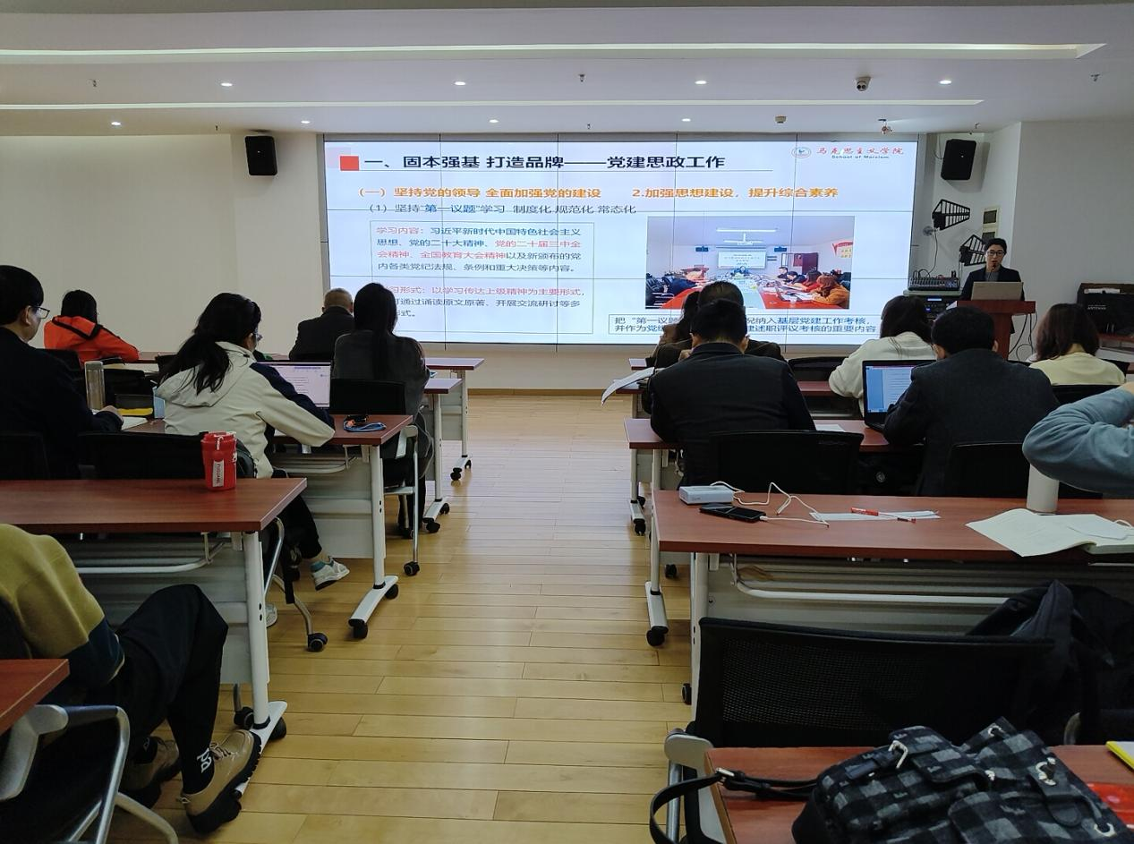 随后,党总支副书记、马院院长助理谭丽婷老师对党建思政、张辉名师工作室及广东省高校思政课区域协同创新中心工作做了部署。一是固本强基、打造品牌。坚持党的领导,加强党的建设,涵盖主体责任及多方面建设;坚持立德树人,扎实推进思政工作,聚焦重点任务,狠抓品牌建设。二是名师引领、培育骨干。深化六大工程培育,打造工作室品牌亮点,开展多项工作。三是共商共建、携手发展。用好省高校思政课区域协同创新中心这一抓手,加强与协同高校的沟通与联动。学院以党建思政为引领,推动马克思主义学院高质量发展。