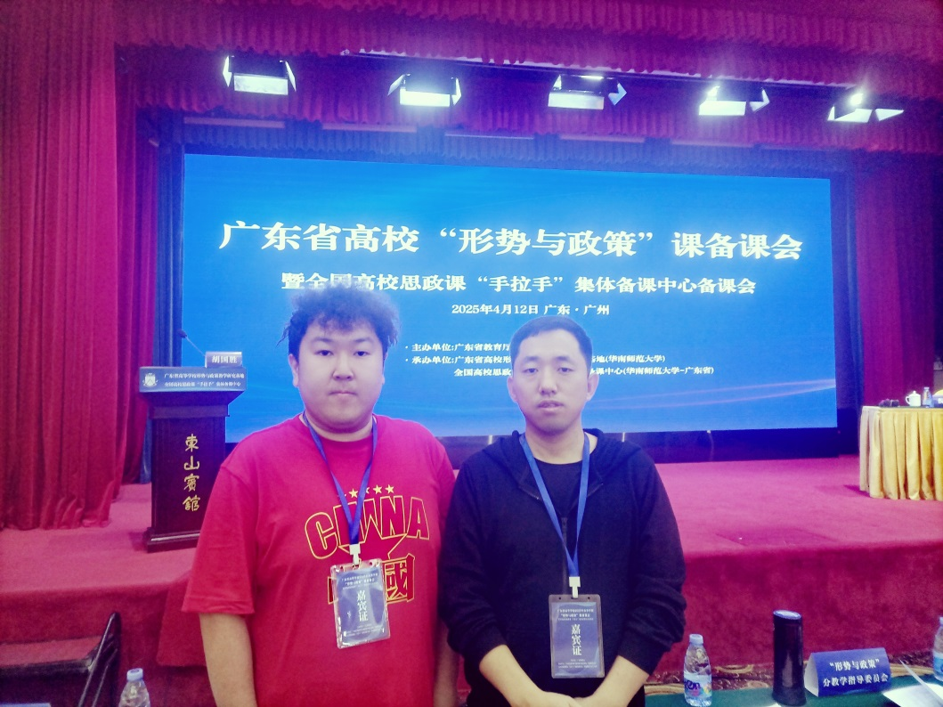 为深入学习贯彻习近平新时代中国特色社会主义思想,精准研判形势发展,赋能beat365形势与政策课教学质量提升,马克思主义学院选派形势与政策教研室主任刘于亮和张赫两位教师于2025年4月12日参加了广东省高等学校2025年春季学期“形势与政策”课备课会暨全国高校思政课“手拉手”集体备课中心备课会。本次备课会由广东省教育厅主办、华南师范大学马克思主义学院承办,会议主要聚焦中美关系、国家安全及人工智能三大领域。