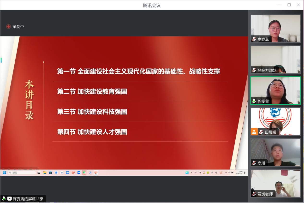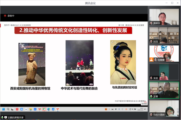 为进一步深化思想政治理论课改革创新,切实提升教学质量,针对本学期以来教学实践中反映出的重难点问题,2025年4月11日晚,习近平新时代中国特色社会主义思想概论教研室通过腾讯会议平台,召开了本学期第三次集体备课会。会议由教研室主任方圆妹副教授主持,全体授课教师参加。