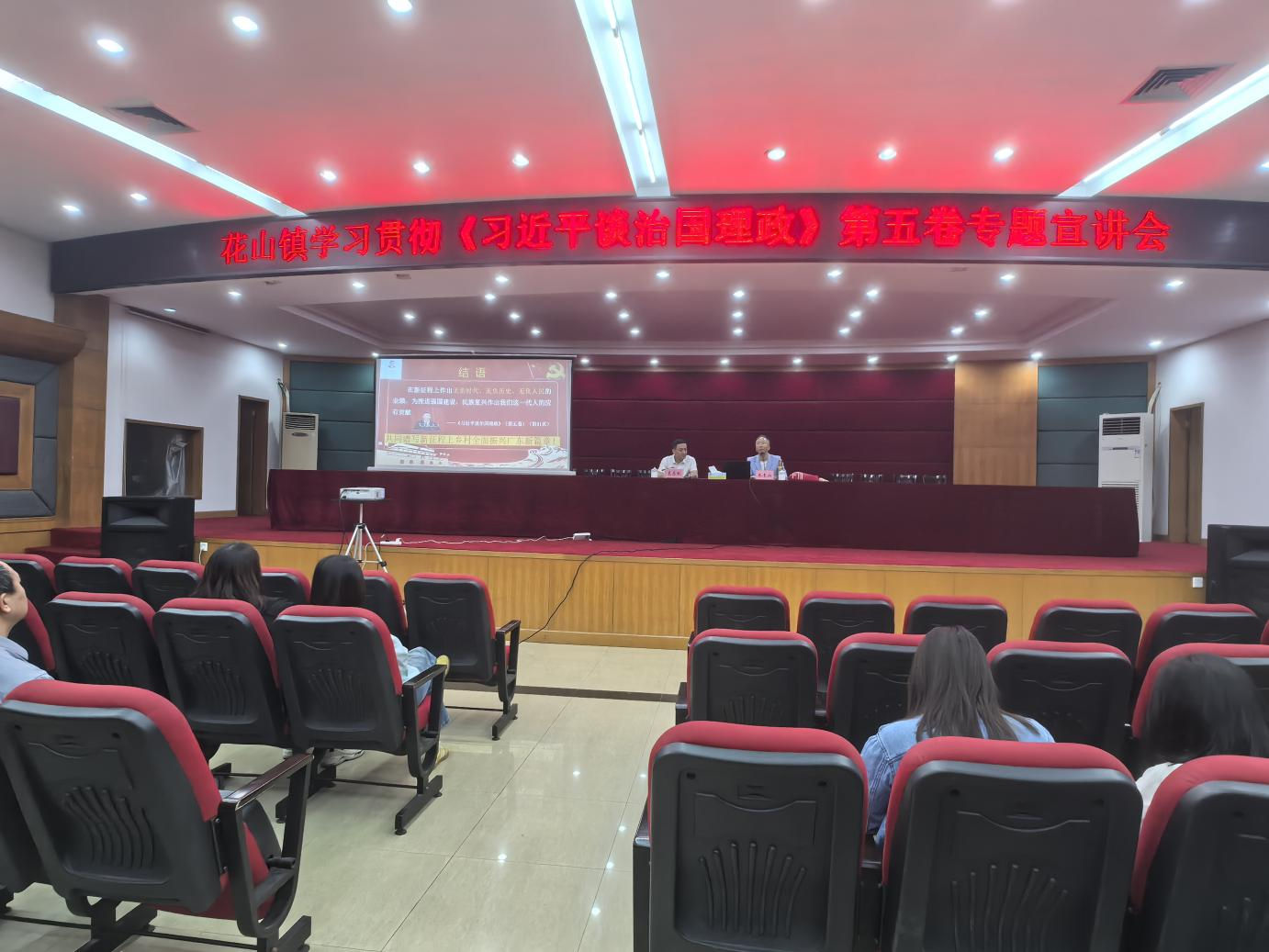 朱教授以宏阔的历史视野展开论述,把党的创新理论置于民族复兴坐标中阐释,充分彰显出其强大的思想伟力。在宣讲内容上,朱教授以其扎实的专业基础和丰富的知识储备,为与会人员构筑起严密的学理框架,从哲学、经济学、法学等多个学科角度切入主题,不仅理清了《习近平谈治国理政》第一卷到第四卷的内在联系,而且深入浅出地梳理了第五卷的逻辑脉络和重点内容,令听众豁然开朗、如沐春风,有拨云见日之感。同时,朱教授还结合农业新质生产力及花都区乡村全面振兴的鲜活案例,既讲“怎么看”,更言明“怎么干”,号召党员干部和企业代表以时时放心不下的责任感,在乡村振兴、强国建设的新征程上跑出加速度、干出新业绩。在近一个半小时的报告中,朱教授金句迭出、直抵人心,这既是一次思想深刻的政治教育,更是一份整装待发的行动宣言,激励与会人员以学铸魂、以学增智、以学正风、以学促干,奋力书写无愧于时代、无愧于人民、无愧于历史的崭新篇章。