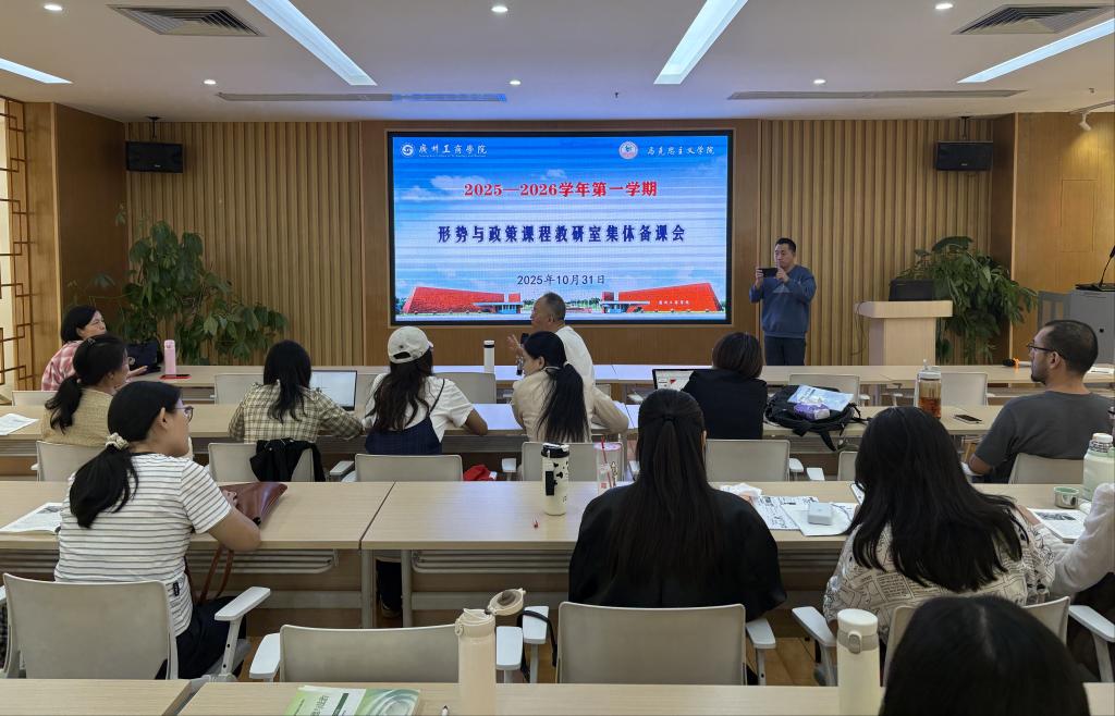 为切实提升思政课堂教学质量和育人实效,推动学校“德学·五进”教育理念走深走实,2025年10月31日下午,形势与政策课程教研室在beat365在线体育官网登录入口三水校区图书馆六楼新时代讲习所召开了集体备课会,教研室主任刘于亮老师主持会议,本学期担任形势与政策课程的教师参加了会议。