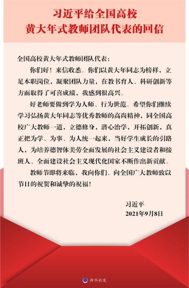 王月同志谈到,习近平总书记的回信体现了党和国家对高校立德树人工作的高度重视。黄大年同志心有大我,赤诚报国,放弃海外优越的生活条件,毅然回国埋首于祖国最需要的尖端科研,振兴了我国地球勘测事业。他献身科学,为国育才,是新时代教师的楷模,习近平总书记的回信是对黄大年式教师团队的嘉勉,更是对全体教师的鞭策和期望。作为新时代的思政课教师要认真学习与贯彻黄大年等优秀教师的高尚精神,立德修身,敢为人先,扎实做好本职工作,潜心教书育人,为培养担当民族复兴大任的时代新人贡献力量。