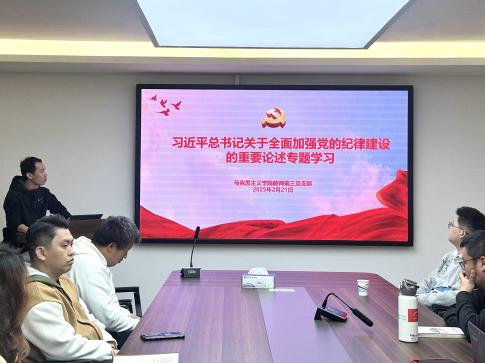 会议第一项议程是组织开展了《习近平总书记关于全面加强党的纪律建设的重要论述》专题学习。全体党员通过视频导学和文件研读相结合的方式,系统领会了“加强纪律建设是全面从严治党的治本之策”“把纪律建设摆在更加突出位置”等重要论断的深刻内涵。作为思政课教师,既要成为党的纪律的模范遵守者,更要在教学实践中将纪律教育与思政课程有机融合,通过强化党章党规党纪学习教育,引导学生扣好人生第一粒扣子。