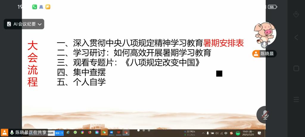 首先,陈书记部署了深入贯彻中央八项规定精神学习教育的暑假安排。她指出,暑期不停学,充电不止步,要不松劲不歇气不停步抓思想和作风建设,从学习研讨、个人自学、警示教育、社会实践、宣传引导等方面高效开展暑期学习教育。并强调支部党员要积极运用学习强国、共产党员网等平台载体,及时跟进学习主题教育相关内容,高效开展暑期学习教育。