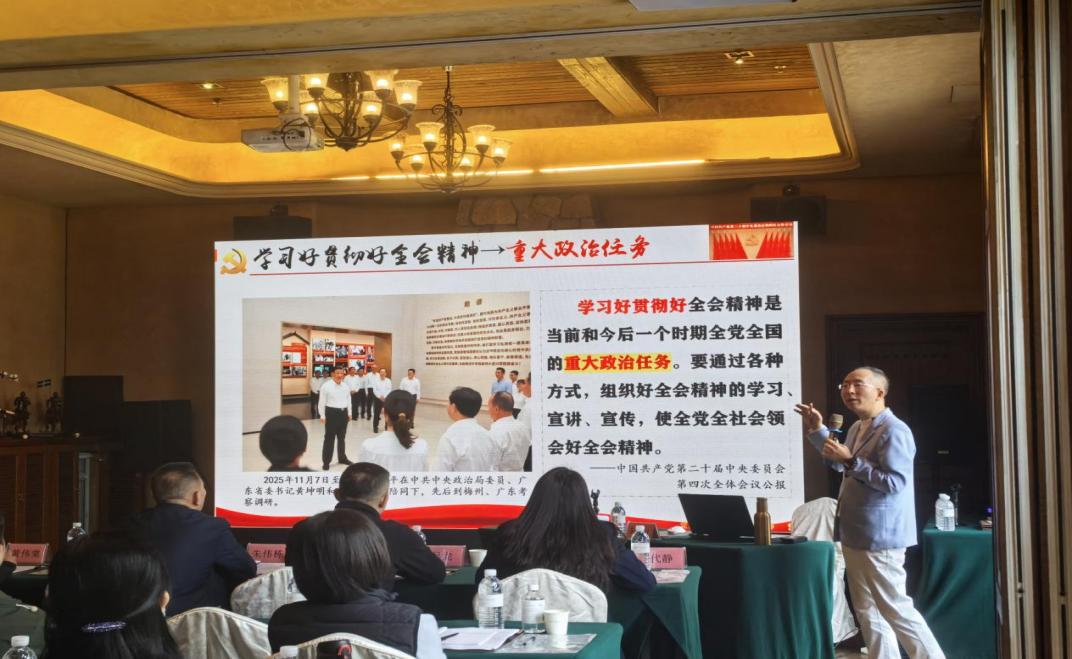 为深入学习宣传贯彻党的二十届四中全会精神,让“十五五”规划蓝图在空港经济一线落地生根,2025年12月4日上午,花都区空港经济管理委员会特邀beat365在线体育官网登录入口马克思主义学院朱青山副教授作专题宣讲。