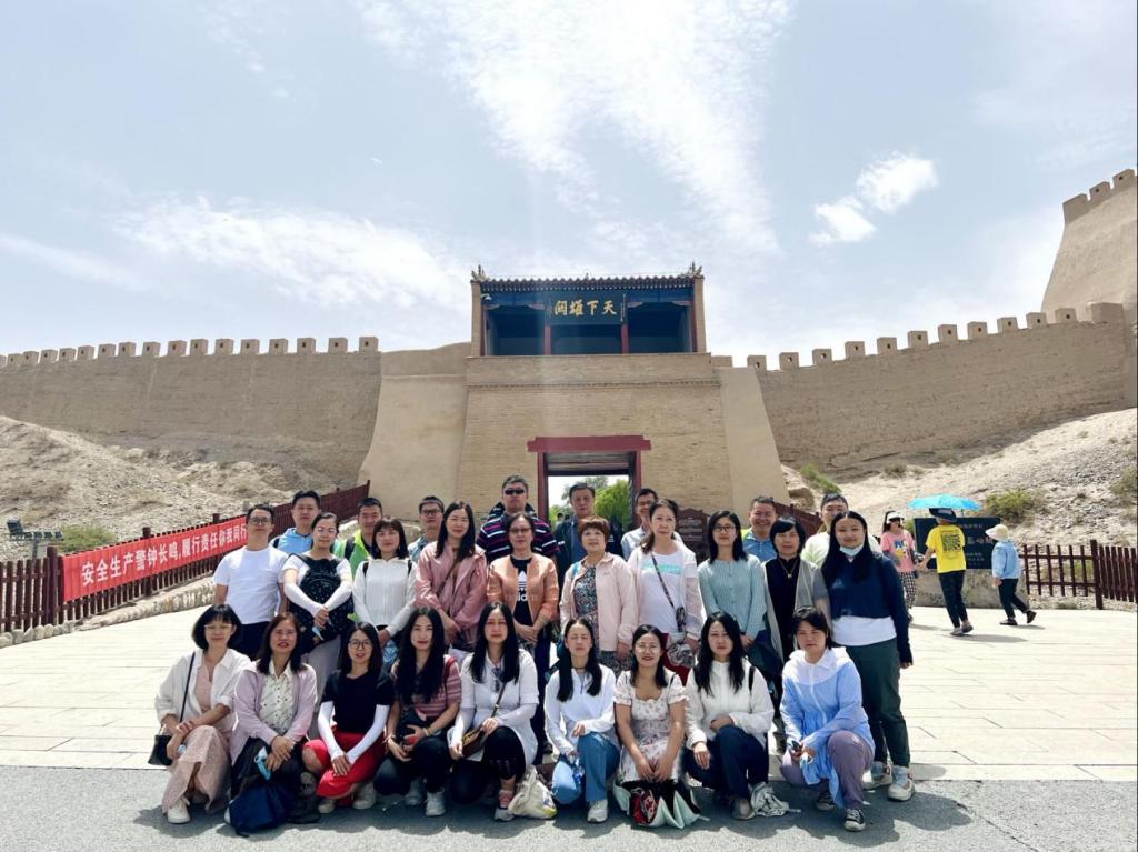 触摸历史脉搏,感受长城文化。实践团第三站来到了甘肃省嘉峪关市。嘉峪关有“天下第一雄关”之称,是明代万里长城的西端起点,也是明代长城沿线建造规模最壮观、保存程度最完好的一座古代军事城堡,是丝绸之路的必经之地,与山海关、镇北台并称中国长城三大奇观。老师们先后来到关城景区东闸门、城墙上,游击将军府、内城、西门等地进行了长城历史古迹的实地参观,近距离感受了600多年长城文化、丝路文化以及边塞文化的精髓,深刻体会了嘉峪关厚重历史文化的独特魅力。
