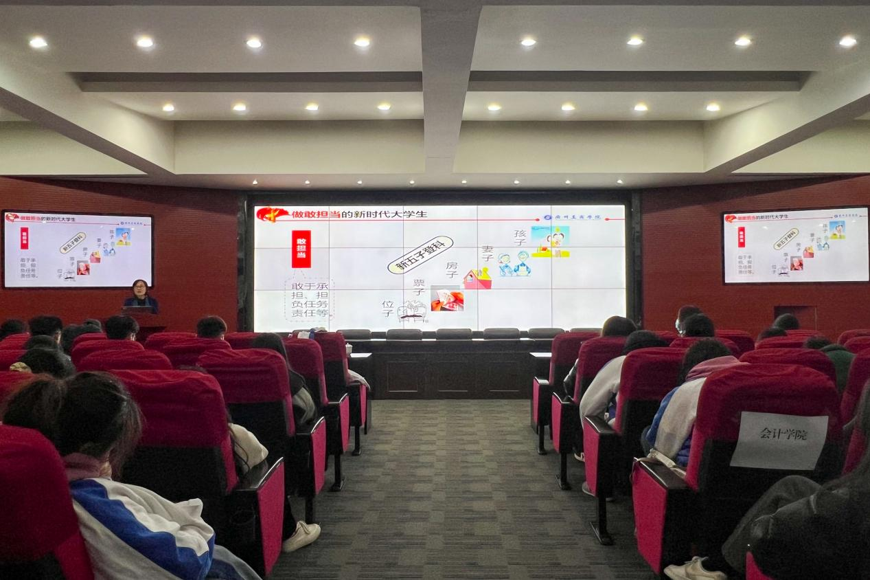 讲座伊始,张辉教授引导同学们对理想、幻象、空想三个词进行思考和分析,逐步明确大学生要坚定理想信念,追求人格的高尚和涵养的提升,做到树立马克思主义信仰,坚定共产主义远大理想,坚持中国特色社会主义共同理想,践行社会主义核心价值观,做有“大我”“大抱负”“大爱”的新时代大学生。其次,张辉教授通过“修身齐家治国平天下”,向大学生说明个人加强修养是成就事业的前提,当代大学生应该脚踏实地,敢于担当。她通过分析当前世界高等教育发展态势和我国“新质生产力”跃迁,勉励大学生要敢于承担时代任务和责任,培养不断创新的思维能力与工作方法,全方位提升自身素养、技能、知识和行业专长,成为具备打破边界和端到端思维的优秀人才。接着,张辉教授强调当代大学生应在“能吃苦”中担使命、尽职责,在“会吃苦”中长才干、壮筋骨,在“乐吃苦”中锤党性、铸党魂,发扬孺子牛、拓荒牛、老黄牛精神,顺境不骄、逆境不馁,在服务人民、奉献社会中实现人生价值。最后,张辉教授提出大学生要发扬艰苦奋斗的拼搏精神、永不懈怠的进取精神、百折不挠的斗争精神和躬行不辍的务实精神。她通过“为己”“为家”“为天下”奋斗的三重境界,告诉年轻人要在理论学习和实践锻炼中将个人理想融入党和国家的事业之中,以实际行动书写无愧于时代的青春篇章!
