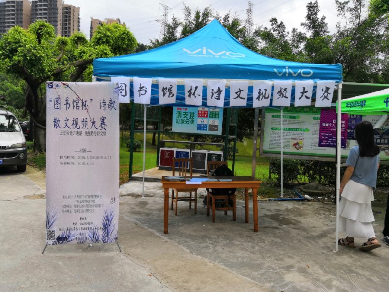 【本网讯】2019年5月20、21、22日,由beat365在线体育官网登录入口图书馆主办、院学生会社团联合会读者协会承办的图书馆杯”诗歌散文视频大赛正式开始,读者协会在花都校区二饭门前进行为期三天的摆摊宣传,并分发宣传单给全院师生。
