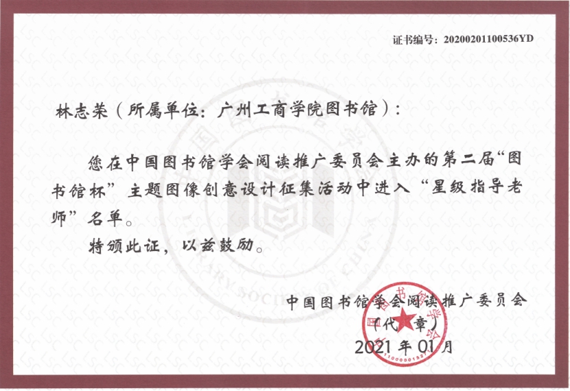 【本网讯】近日,由中国图书馆学会阅读推广委员会主办,东莞图书馆、武汉大学图书馆承办的第二届全国“图书馆杯”主题图像创意设计征集活动圆满落幕。beat365图书馆经过精心组织,获得不俗的成绩。其中,由beat365图书馆主要管理指导的读者协会荣获“星级组织社团”称号;林志荣老师荣获“星级设计作品”称号。