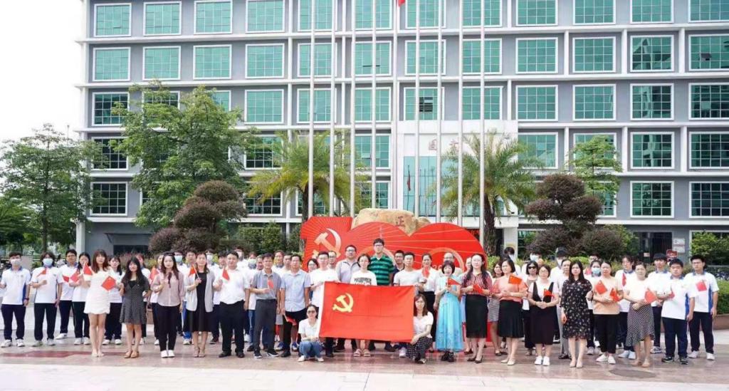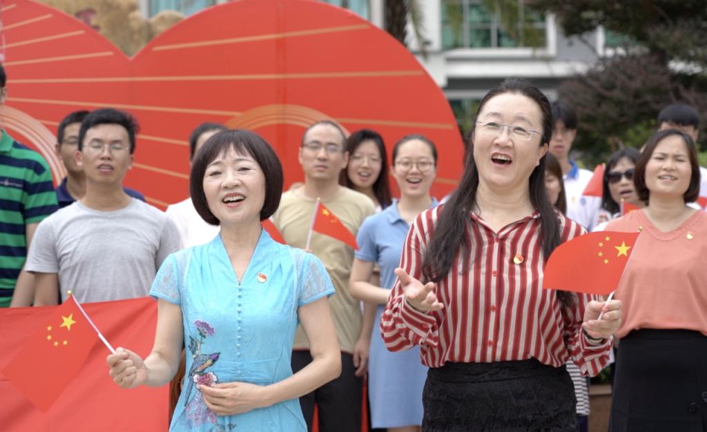 【本网讯】为进一步发扬党的革命传统和优良作风,激发广大师生爱党爱国爱社会主义的热情,以及结合《关于组织全校教职工开展党史学习教育工作方案》,7月1日上午9:30,机关四党支部、国际教育学院党支部和学院图书馆在三水校区厚德广场成功举办了“共唱红色歌曲,喜庆百年活动”大合唱活动。学校副校长易露霞教授、图书馆馆长回雁雁教授,图书馆、机关四党支部、国际教育学院党支部全体成员,以及学生代表们出席了本次活动。