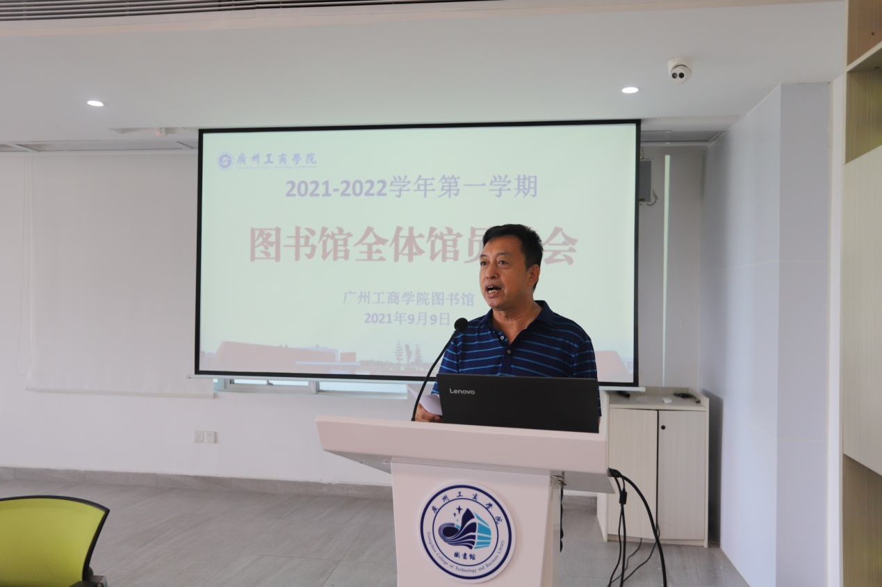 王自东副馆长结合上学期工作,对花都图书馆建设、回迁做了具体安排,并就绿色校园、学科服务、数字资源与馆藏图书建设、疫情防控等六个方面做了总结和安排。