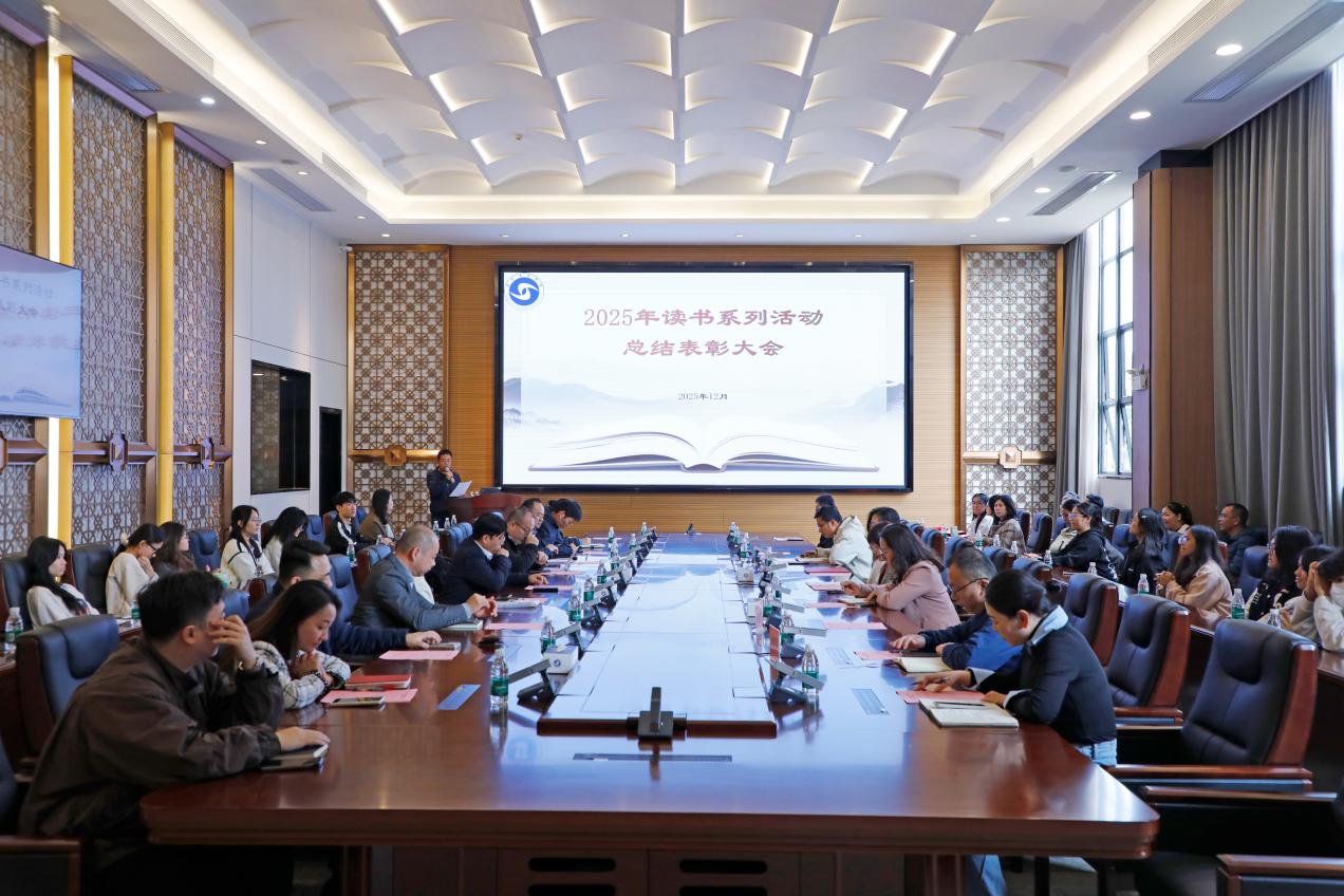 王蕙馆长对2025年读书系列活动作总结发言。她对2025年的读书系列活动作了系统介绍,系列活动从3月份策划、启动到12月结束,系列活动覆盖全校师生,开展学术讲座、知识竞赛、信息素养竞赛、读书分享、创作比赛等25项各类读书活动,累计参与人次达到8454人次;组织全校学生参与多项校外读书活动,校外赛事获得各级奖项达36人次,较上年度有显著的提升;同时,图书馆的图书借阅总量和生均借阅量也均有相应的提升。今后图书馆将以此次活动为契机,总结经验、弥补不足,进一步深化阅读推广与人才培养、专业建设、产业服务的深度融合,为培养更多“德学兼备、知行合一,扎根南粤、服务湾区”的新时代优秀应用型人才贡献力量。