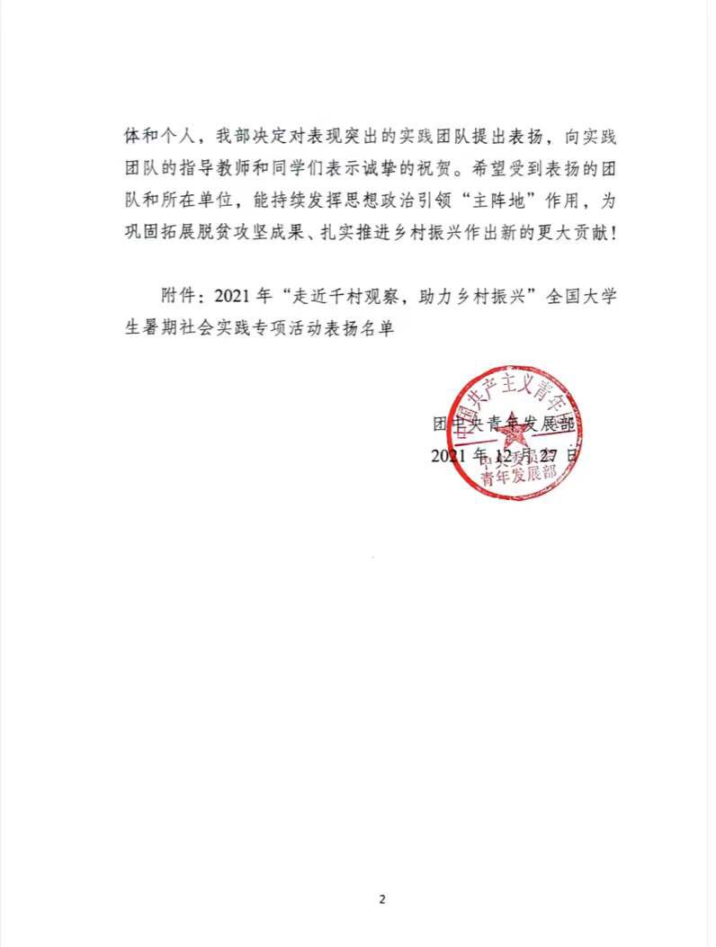 凡是过去,皆为序章,沉甸甸的荣誉是赶考路上的新动力。下一步,校团委将继续总结好工作经验,发挥好实践育人示范作用,强化思想引领效果,创新志愿服务项目,营造良好氛围,引导青年积极投身基层实践,服务乡村振兴,引领青年始终走在时代前列,在社会课堂中受教育、长才干、作贡献,争当有志气、有骨气、有底气的新时代青年。(团委严晓君)