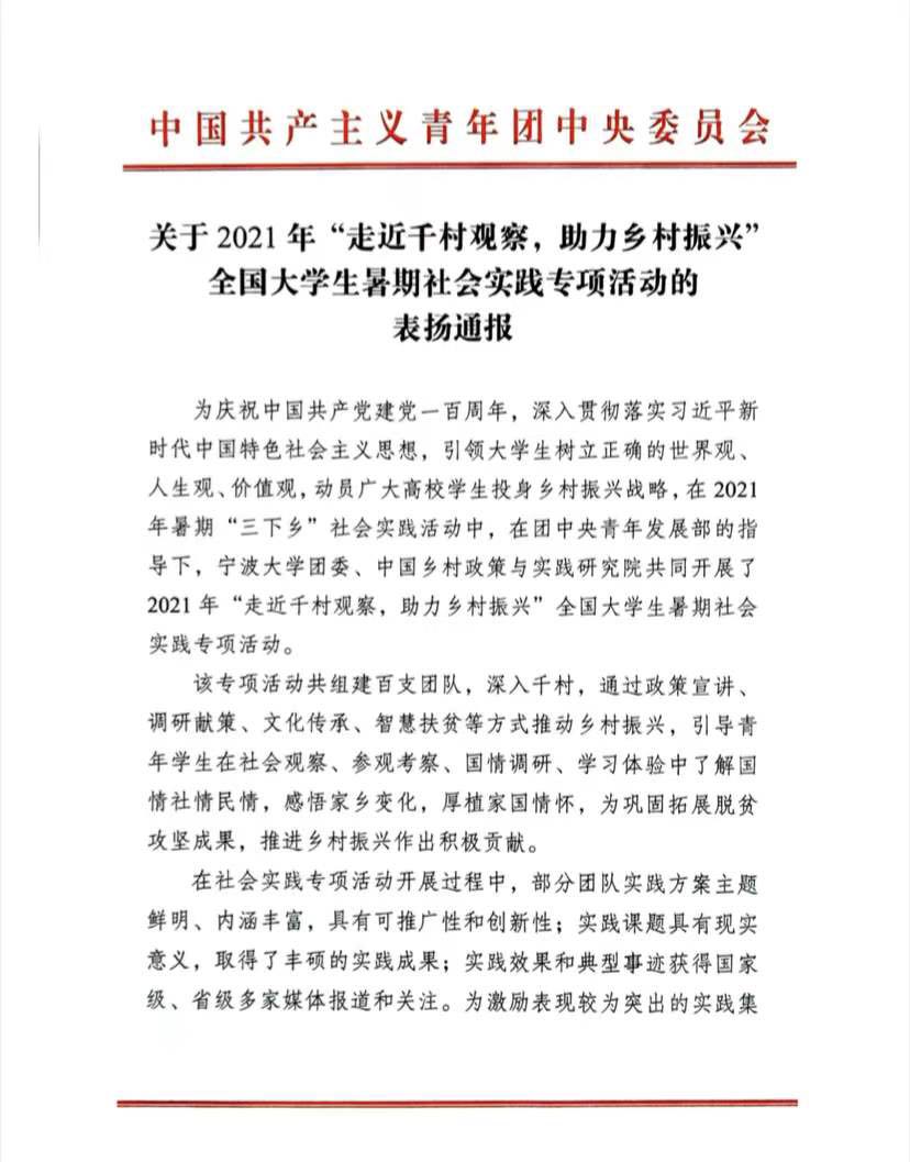 据悉,校团委历来始终高度重视暑期“三下乡”社会实践活动,并经过不断地改进完善,形成了极具特色且富有成效的实践育人模式。一是将“三下乡”作为加强改进大学生思想政治教育、深化爱国主义教育的重要抓手,引导和帮助广大青年学生上好与现实相结合的“大思政课”;二是以“三全育人”为契机,“第二课堂成绩单制度”为保障,更广泛、更有效地组织青年参与社会实践活动;三是注重把线下的活动开展与线上的典型宣传相结合,形成了一批生动形象、富有意义、脍炙人口的新媒体产品,将“乡愁”说得出去,将“奉献”传得开;四是注重多元联动,将“学党史”与“办实事”,“三下乡”与“返家乡”融合。